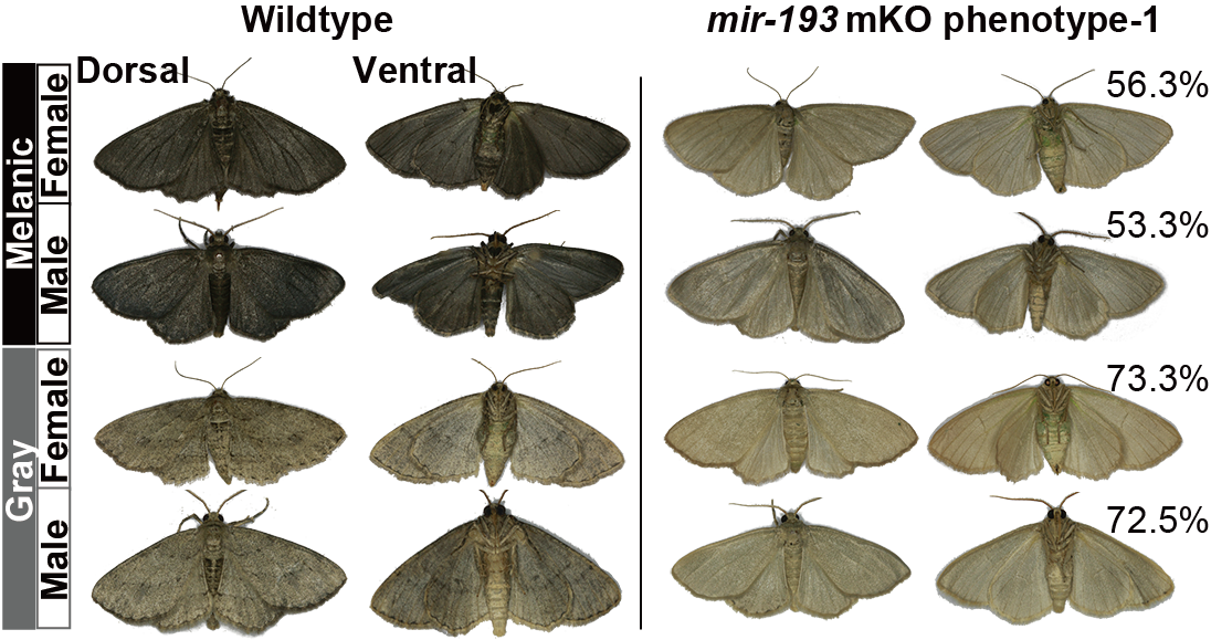 Fig. 3. Functional validation of the key effector (mir-193) within the melanism locus using gene editing.