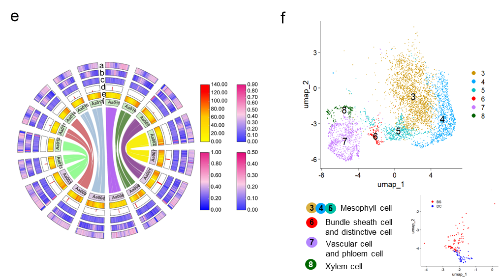 On January 9, 2026, Nature Plants published online a research paper titled "Assembly of Arundinella anomala genome to facilitate single-cell resolved functional and developmental characterization of C4 distinctive cells," jointly completed by the research groups led by WANG Peng and by HAN Bin from the Center for Excellence in Molecular Plant Sciences, Chinese Academy of Sciences. The study accomplished whole-genome sequencing, assembly, and annotation of the C4 grass Arundinella anomala. By integrating single-cell analysis, the research revealed the functional properties and molecular characteristics of its distinctive C4 cells (DC cells), which exhibit a Kranz-like arrangement, and explored the mechanisms underlying their independent development and alternate organization.